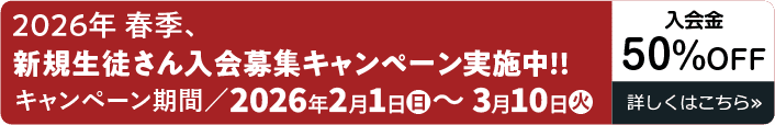 ※2026年 春季、新規生徒さん入会募集キャンペーン開催中は入会金が50%OFFになります。