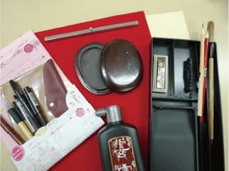 毛筆と硬筆を総合的に学ぶための、「専用お道具セット」一式が必要です。入会時に購入していただきます。