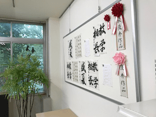 書の上達には「励み」や「手応え」も必要な要素です。人からの評価は嬉しいものですし、励みにもなります。毎回提出したお清書は講師の評価が記録され、優れた清書作品は優秀賞等の賞が授与され、教室と教室ホームページに作品が紹介される形式にしております。生徒さんに『充実のお稽古』を提供できるよう工夫を凝らたお稽古内容にしています。